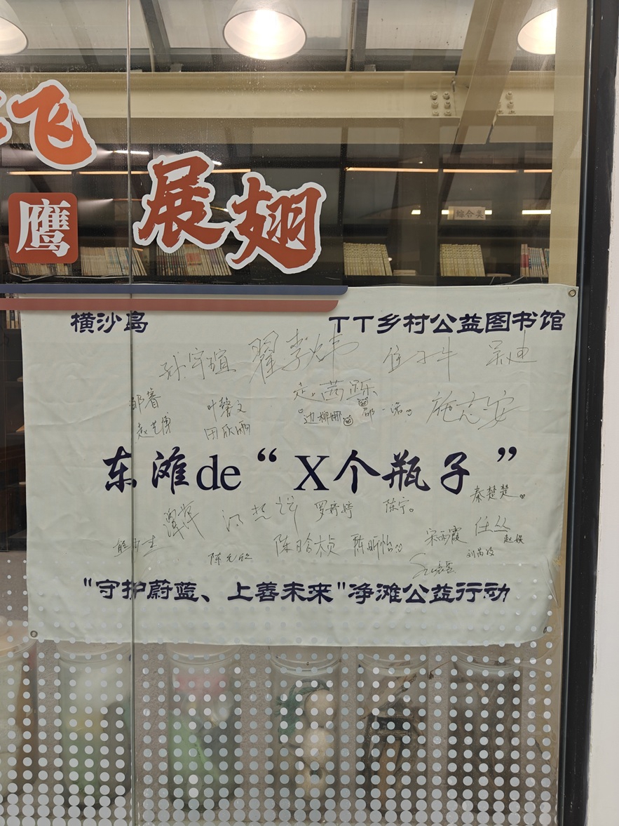 更难得的是,图书馆不只是读书的地方,更是践行公益、传递温暖的平台。多年来,上海财经大学会计学院等高校的师生们常慕名而来,开展捐书助学、阅读分享活动,每次到访,他们不仅带来书籍,还会同步参与“东滩净滩”等环保公益实践,将阅读的温度延伸到生态守护中。