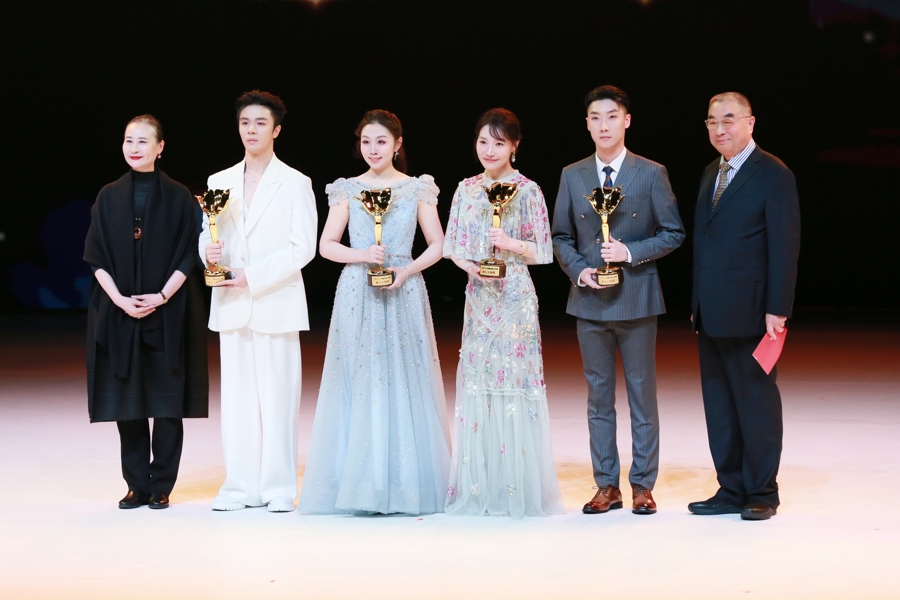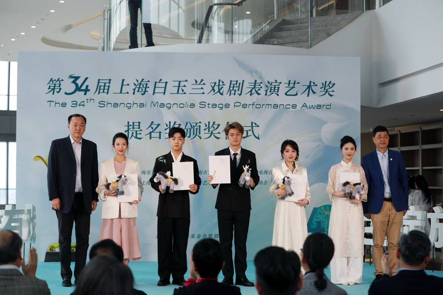 上海越剧院陆派小生演员范莹(左二)凭《情探》王魁获得新人配角提名奖