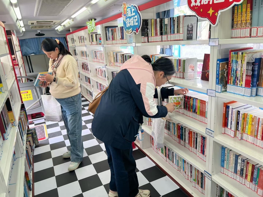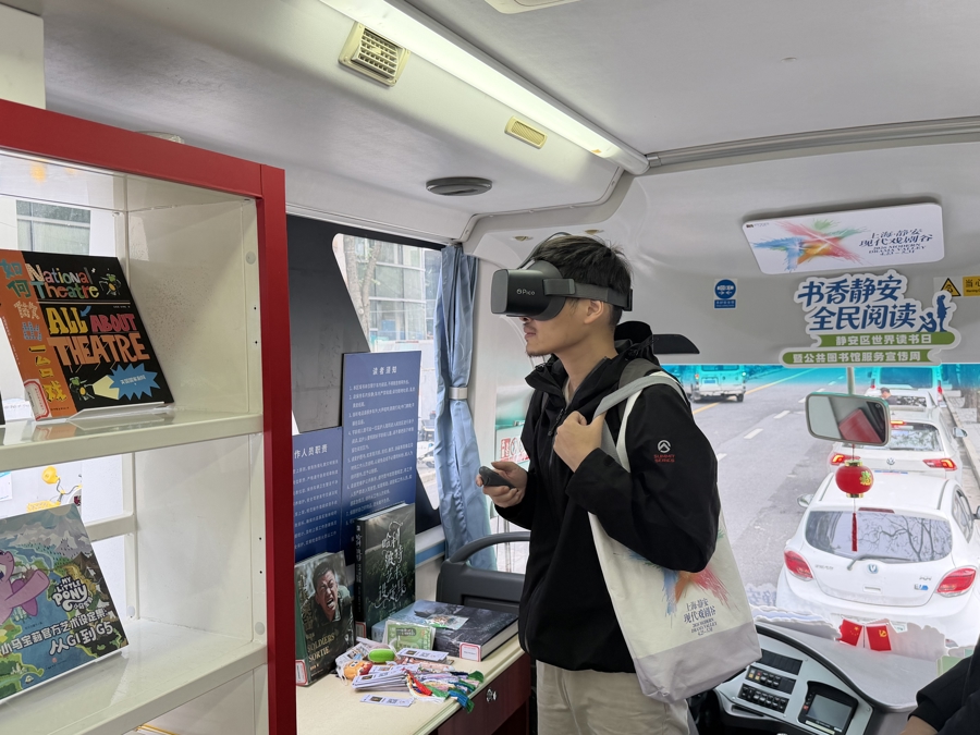 这些天,一辆“蓝色书巴”穿梭于街巷里弄、商圈广场、社区公园之间,宛如流动的阅读使者。这是静安区图书馆打造的流动图书车,车内有4000余册优质图书可供读者借阅,还搭载了VR沉浸式互动设备,将新潮的智慧阅读体验送到市民家门口。4月25日,书巴“换装”为戏剧主题,停靠在永源路举办的“戏引力·剧好玩”2026静安戏剧市集上,解锁“阅读+戏剧”新玩法,吸引了不少人打卡。