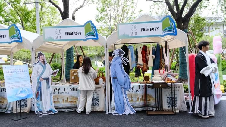 “带三本旧书,换一本新读。”周末的锦绣文化公园一派热闹景象。这不仅是浦东图书馆举办的“第三届书香嘉年华”,更是一场如约而至的“可逛、可换、可玩、可品”的阅读派对。满目绿意中,点缀起数十个摊位帐篷,书香、非遗、文创、美食四大板块错落有致。不少市民提着装有旧书的帆布袋来到现场,经工作人员仔细核对书籍品相后,便能从精选好书里挑选新读物。“《活着》家里有两个版本,现在想换一本童书给孩子看。”家住花木街道的陈琳带着女儿前来,不仅挑到了心仪绘本,还在非遗体验区和国学互动打卡区挑战了“飞花令”,收获惊喜盲盒。