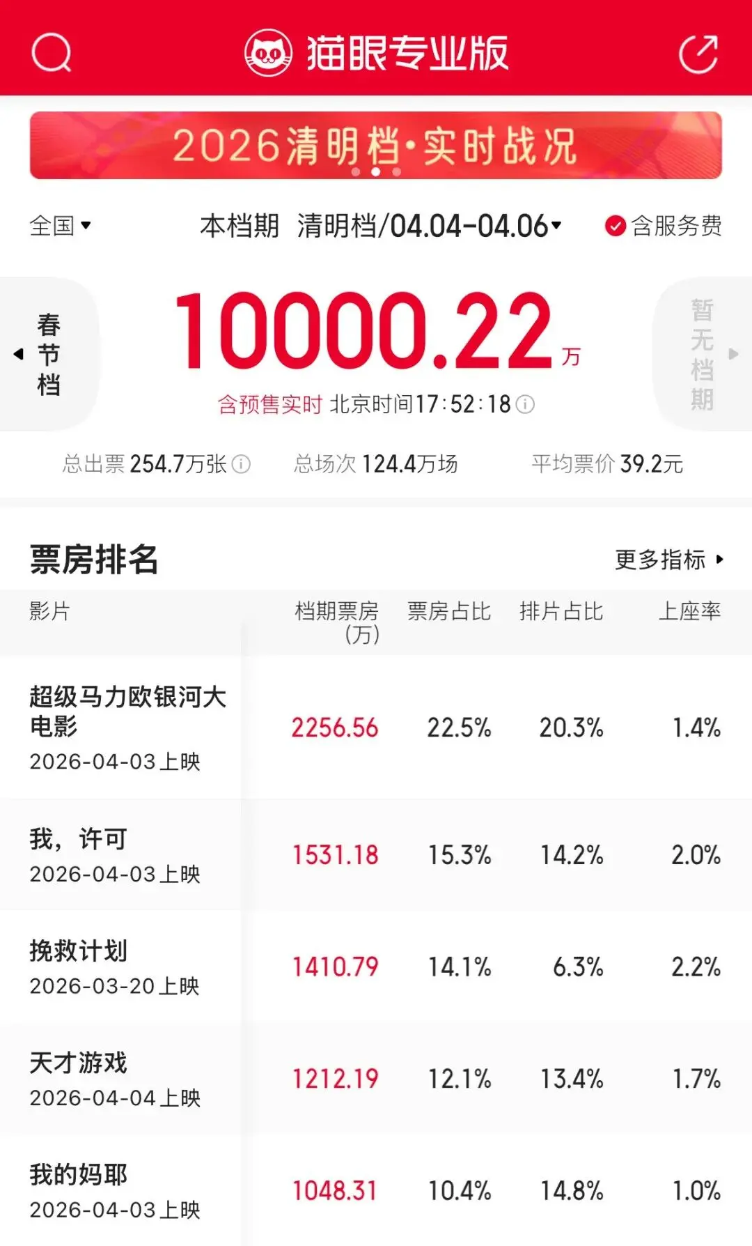 2026清明档电影票房(含预售)